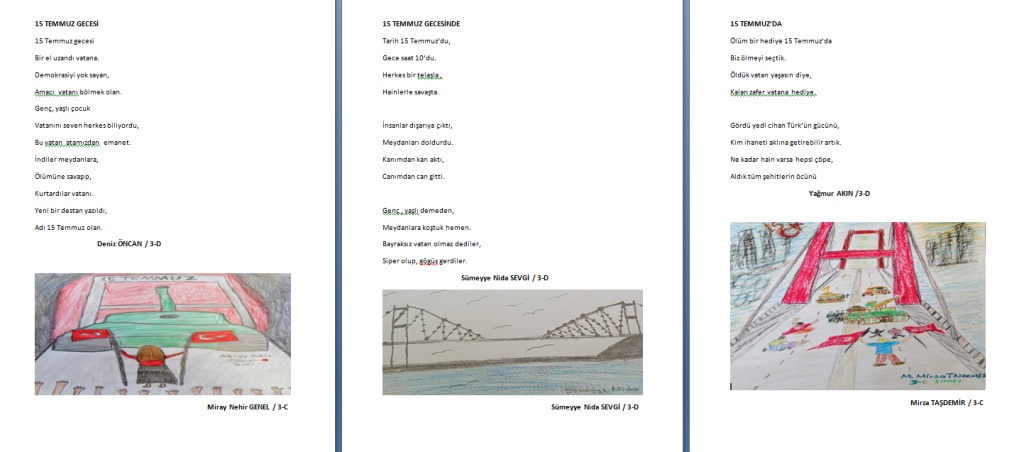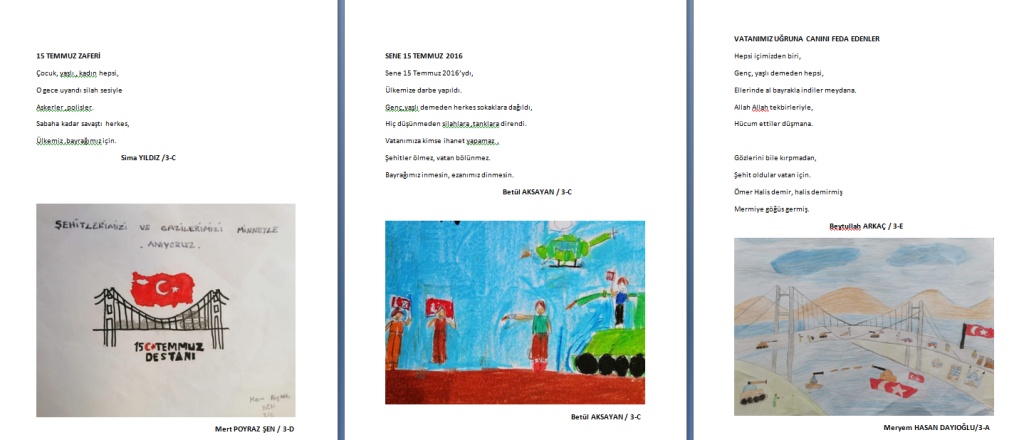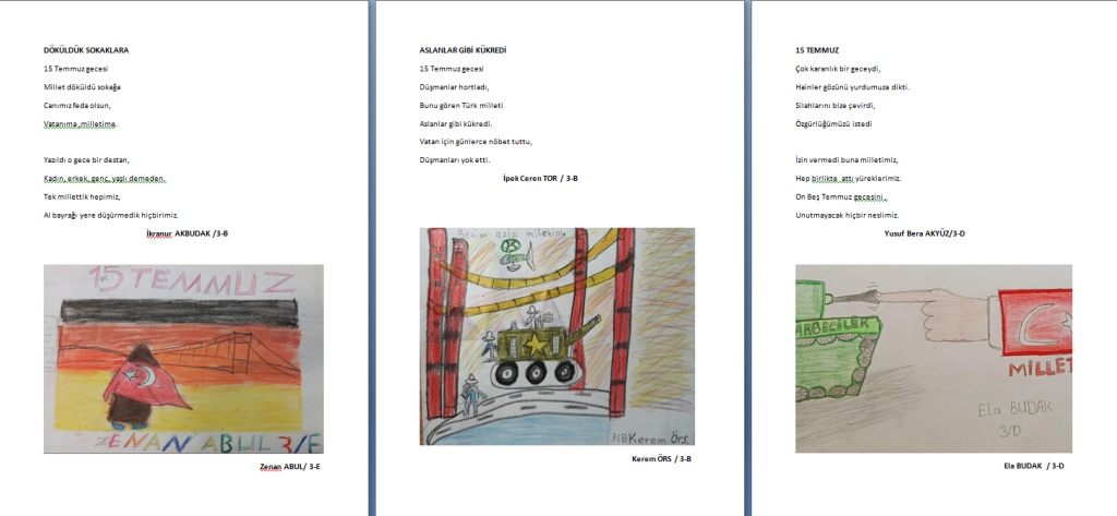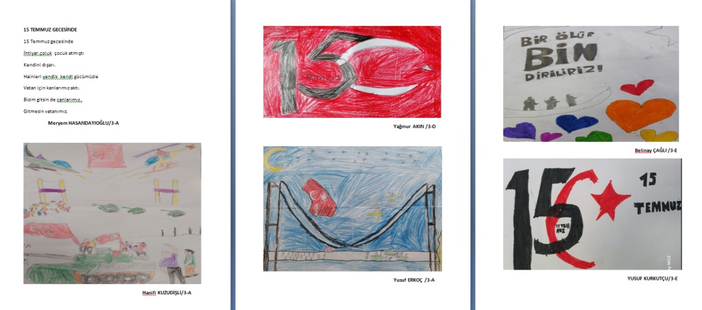 Okulumuzda hazırladığımız çocuklarımızın resimleri ve hazırladıkları sevgi dolu mesajlarla, bu özel günü anmayı sürdürüyoruz. Birlik ve beraberlik içinde daha güçlü yarınlara ulaşmak için tüm milletimizin dayanışmasına ve demokrasiye sahip çıkmaya devam edelim.